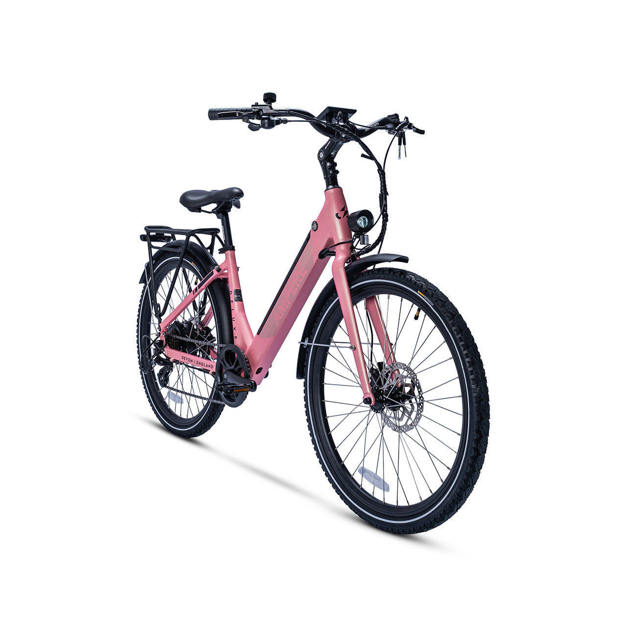 The Ampere ‘Deluxe’ Electric Step-through Bike couples traditional styling with cutting-edge design innovation. Using the most popular step-through shaping, the light but robust frame includes a fully integrated battery creating a sleek and ultra-contemporary look. Perfect for city riding, but equally at home on a country trail.The powerful 65 Nm motor will allow your trips to be limited only by your imagination. While the quick-release battery makes charging simple and delivers an impressive range of up to 55 miles per charge.