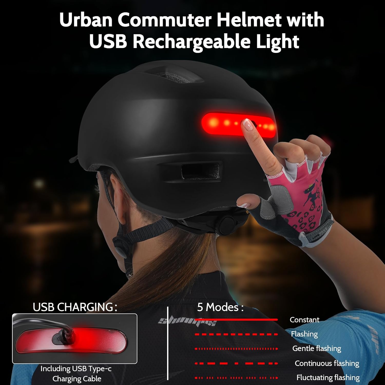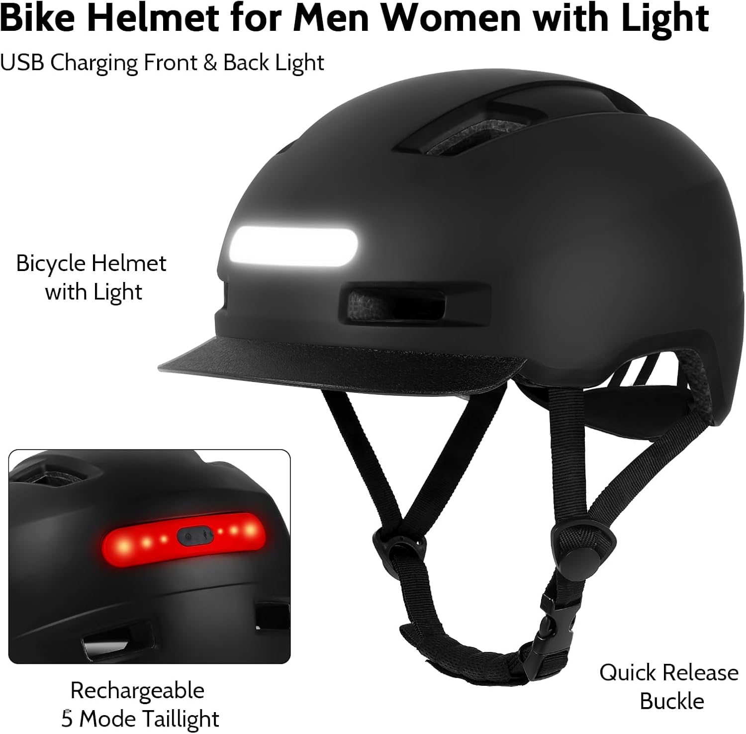 Bicycle Helmet for Men and Women, Bike Helmet with Light, 5 Modes, Bicycle Helmet with Visor, Mountain Bike Helmet, Road Bike Helmet for Adults for Urban Commuters